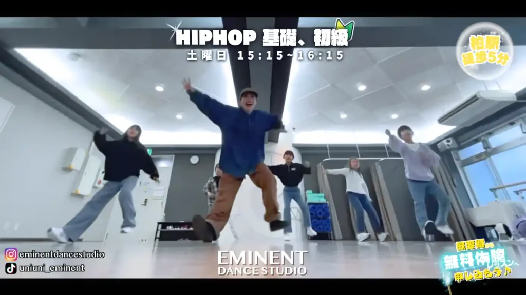 柏市のダンス教室「エミネントダンススタジオ」の「HIPHOP(ヒップホップ)基礎・初級クラス」を担当する講師は